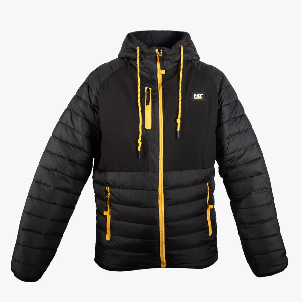 ¡Complementa tu día! Mejora tu outfit con la comodidad de esta estupenda chamarra en color negro con detalles amarillos y capucha.